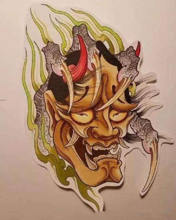传统艺妓般若纹身图案手稿