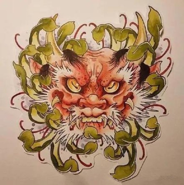 半甲唐狮手稿 传统的9款唐狮主题半甲纹身手稿图片