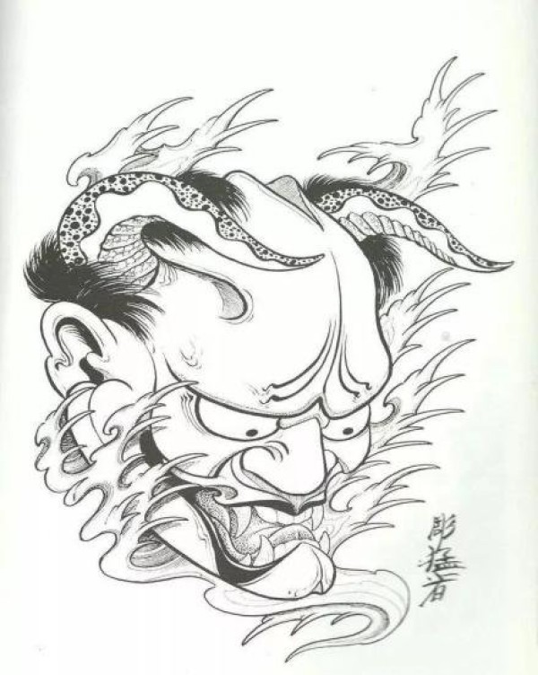 半甲唐狮手稿 传统的9款唐狮主题半甲纹身手稿图片