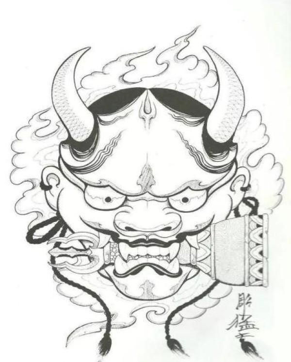 传统艺妓般若纹身图案手稿