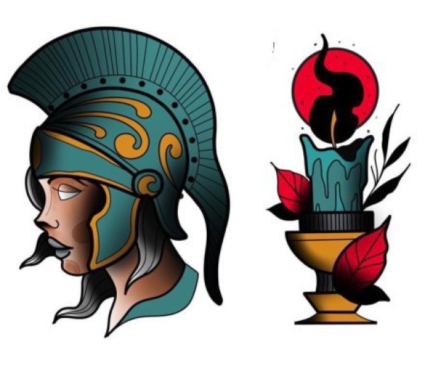 38组黄红色调的school彩图纹身手稿图案