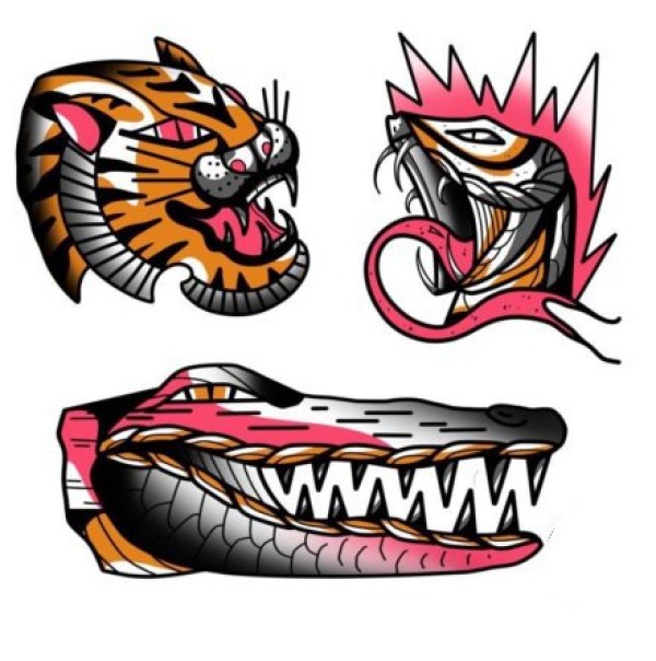 半甲唐狮手稿 传统的9款唐狮主题半甲纹身手稿图片