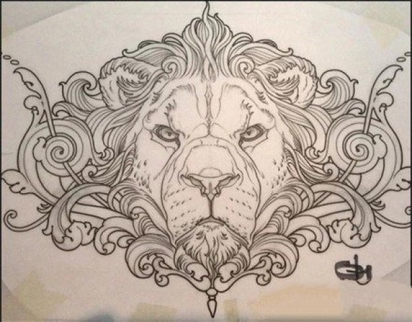 半甲唐狮手稿 传统的9款唐狮主题半甲纹身手稿图片