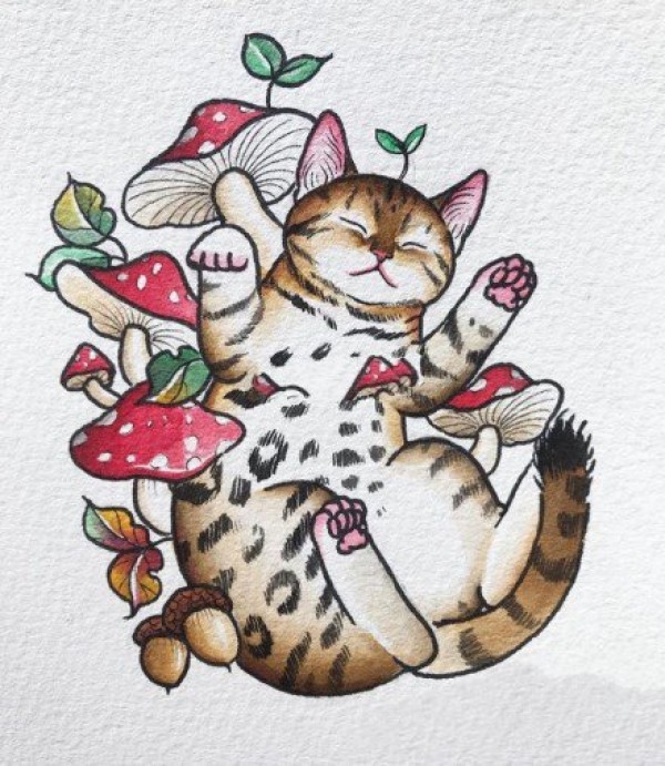小清新猫头主题的一组猫神纹身素材手稿