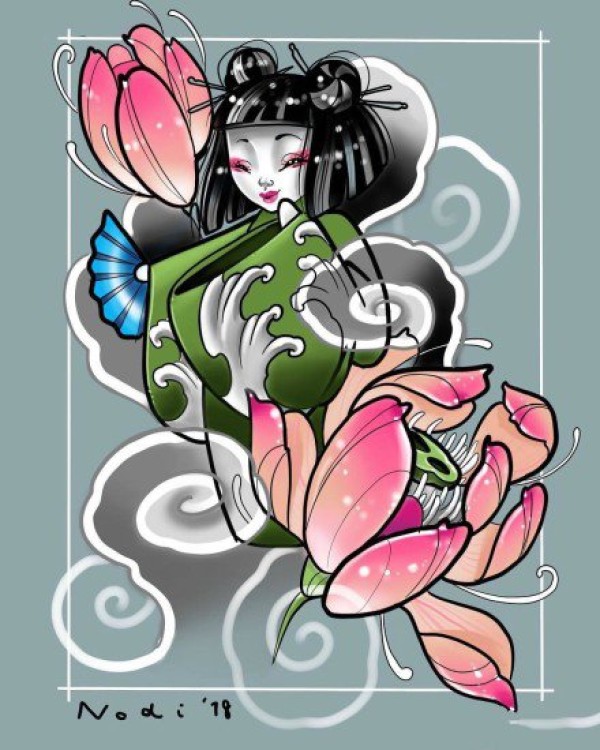 传统艺妓般若纹身图案手稿