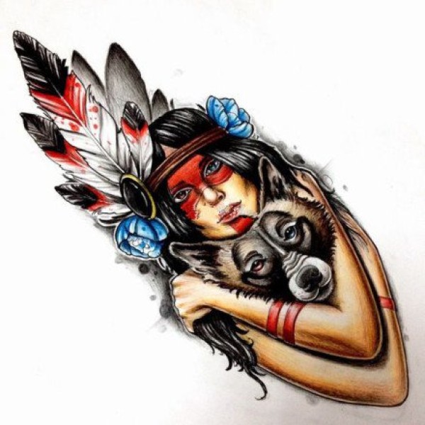 9张各风格印第安女郎的纹身手稿图片