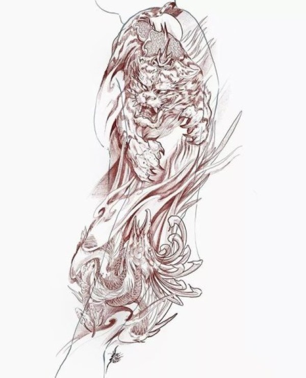 半甲唐狮手稿 传统的9款唐狮主题半甲纹身手稿图片