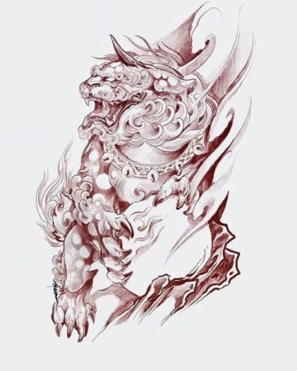 半甲唐狮手稿 传统的9款唐狮主题半甲纹身手稿图片
