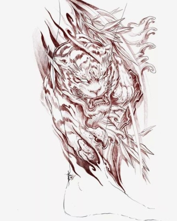 半甲唐狮手稿 传统的9款唐狮主题半甲纹身手稿图片