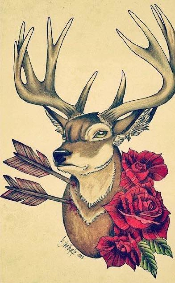 44组小鹿等鹿头纹身手稿素材图案