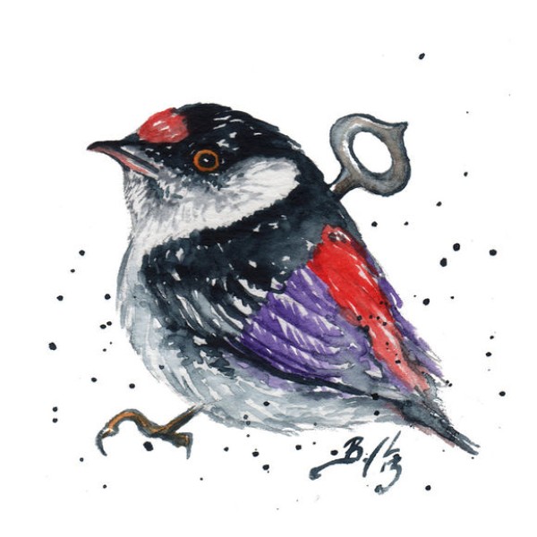 50张水彩色知更鸟等小鸟纹身手稿