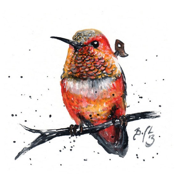 50张水彩色知更鸟等小鸟纹身手稿