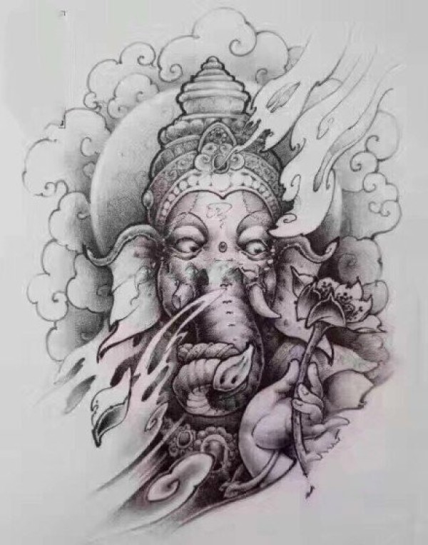 半甲唐狮手稿 传统的9款唐狮主题半甲纹身手稿图片