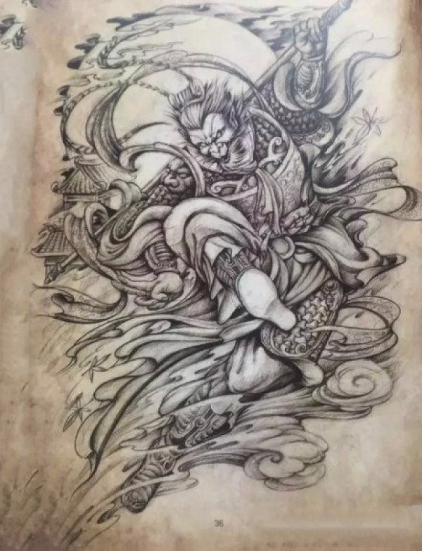 半甲唐狮手稿 传统的9款唐狮主题半甲纹身手稿图片