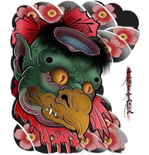 半甲唐狮手稿 传统的9款唐狮主题半甲纹身手稿图片