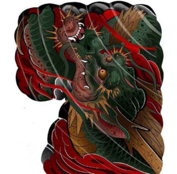 一组满背大气九龙拉棺纹身图案作品和手稿