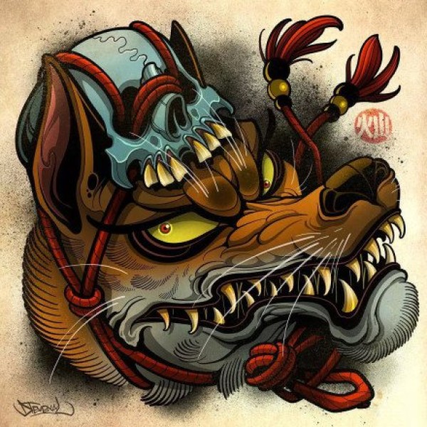 半甲唐狮手稿 传统的9款唐狮主题半甲纹身手稿图片