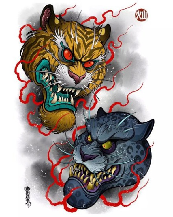 半甲唐狮手稿 传统的9款唐狮主题半甲纹身手稿图片