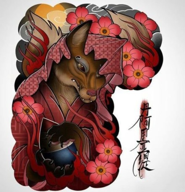 传统艺妓般若纹身图案手稿