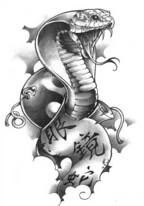 9张蛇盘牡丹的纹身手稿图片