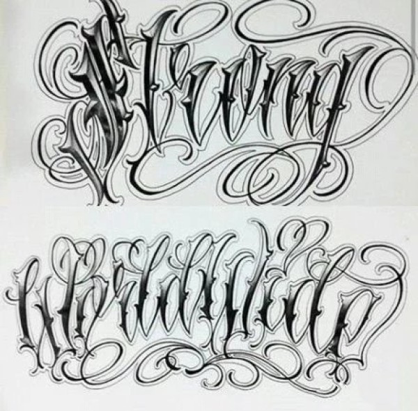 40组漂亮的奇卡诺英文花体字纹身手稿图片