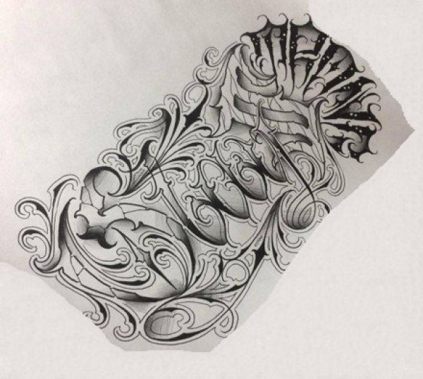 40组漂亮的奇卡诺英文花体字纹身手稿图片