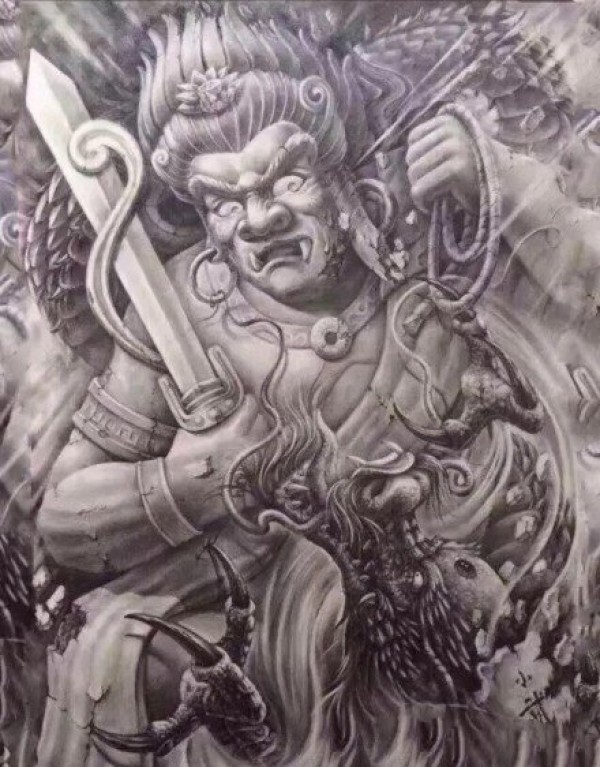 一组满背大气九龙拉棺纹身图案作品和手稿