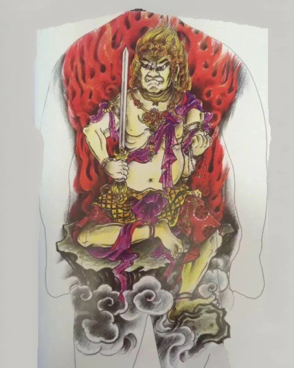 一组满背大气九龙拉棺纹身图案作品和手稿