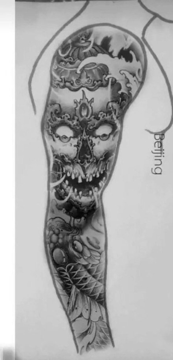 一组满背大气九龙拉棺纹身图案作品和手稿