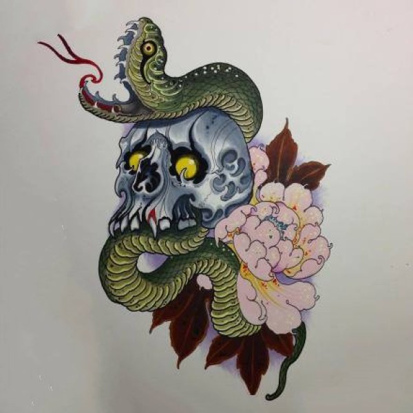 传统艺妓般若纹身图案手稿