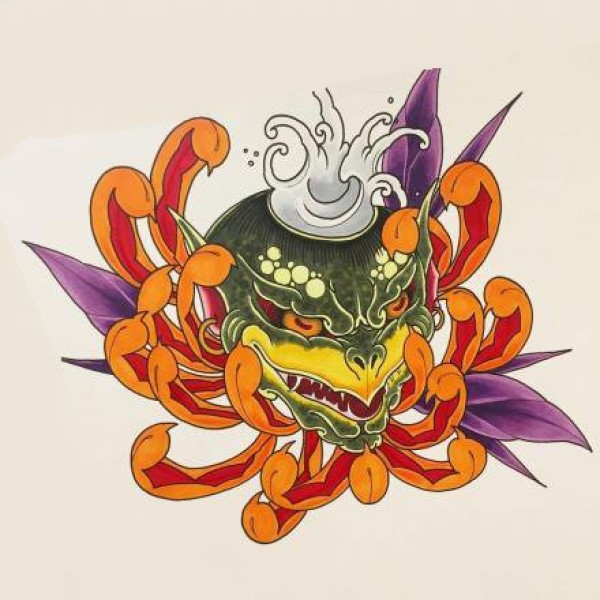 半甲唐狮手稿 传统的9款唐狮主题半甲纹身手稿图片