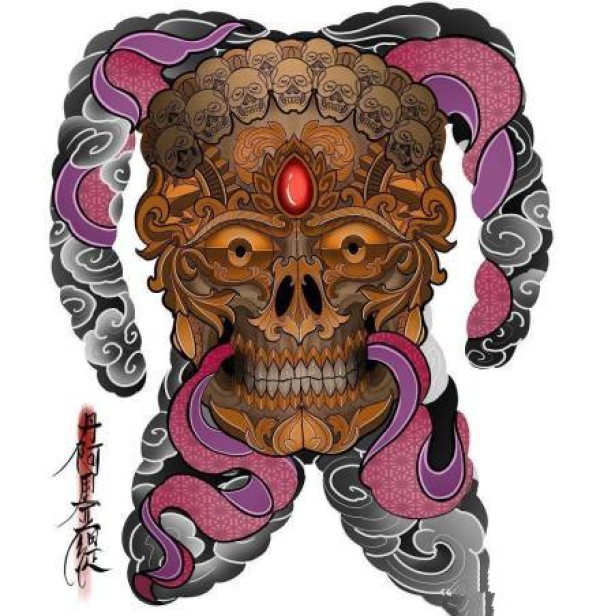 一组满背大气九龙拉棺纹身图案作品和手稿