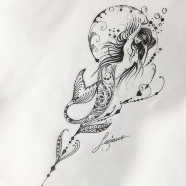 小清新的美人鱼纹身素描手稿图案