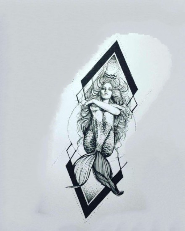 小清新的美人鱼纹身素描手稿图案