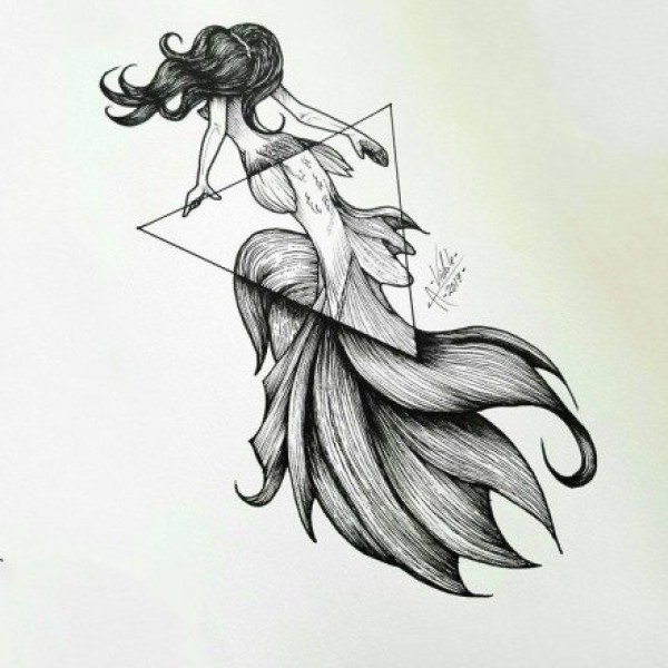小清新的美人鱼纹身素描手稿图案