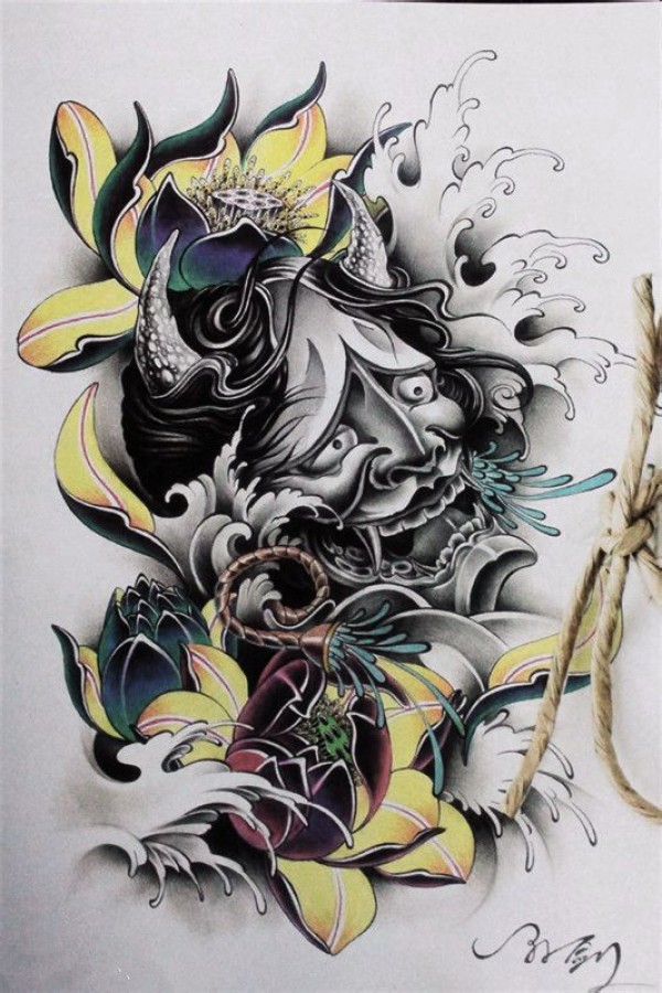 半甲唐狮手稿 传统的9款唐狮主题半甲纹身手稿图片