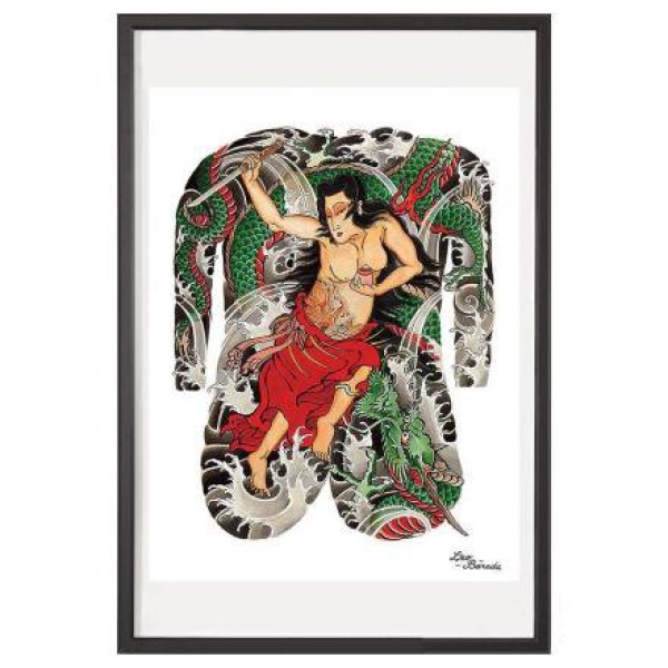 一组满背大气九龙拉棺纹身图案作品和手稿