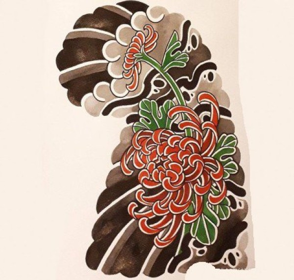 日式大板雾满背纹身手稿