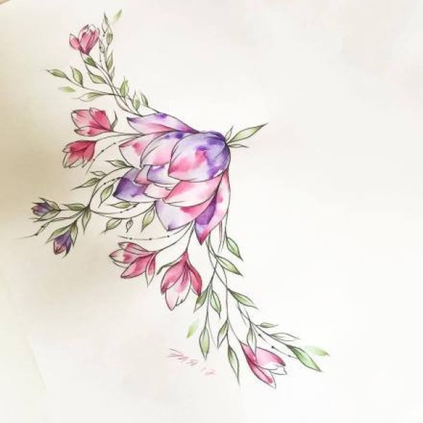 9组小清新的植物系列纹身手稿图片