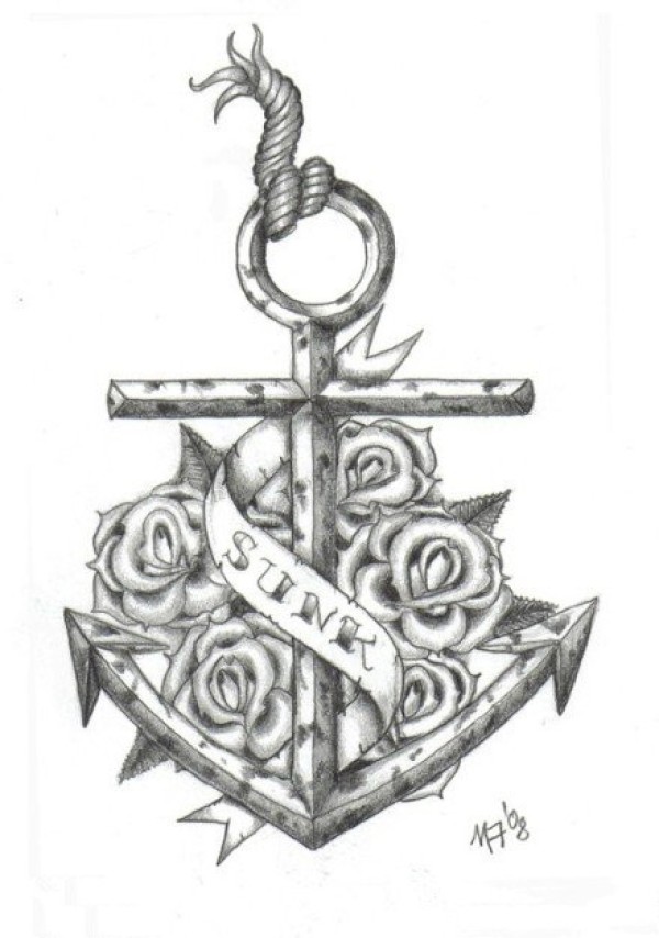 36组漂亮的船锚纹身手稿图案