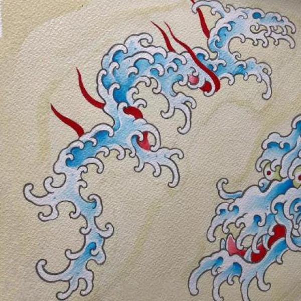 一组满背大气九龙拉棺纹身图案作品和手稿