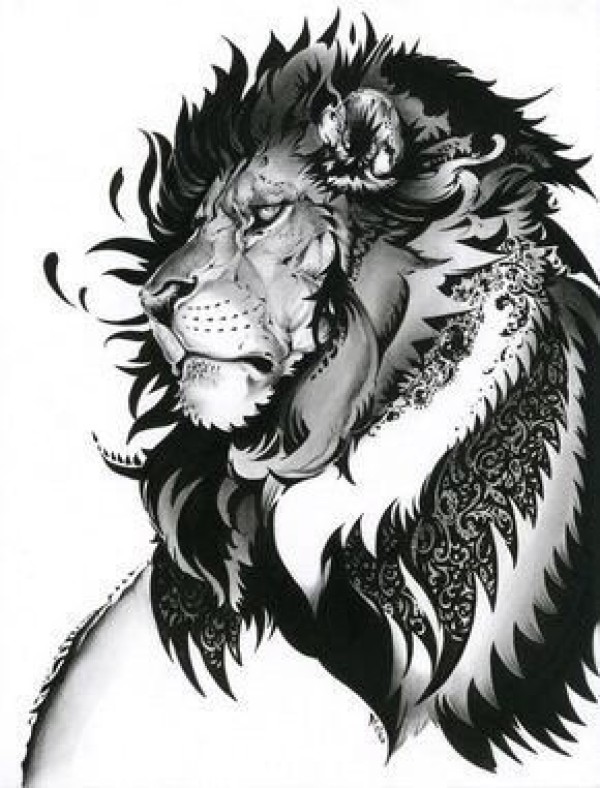 半甲唐狮手稿 传统的9款唐狮主题半甲纹身手稿图片