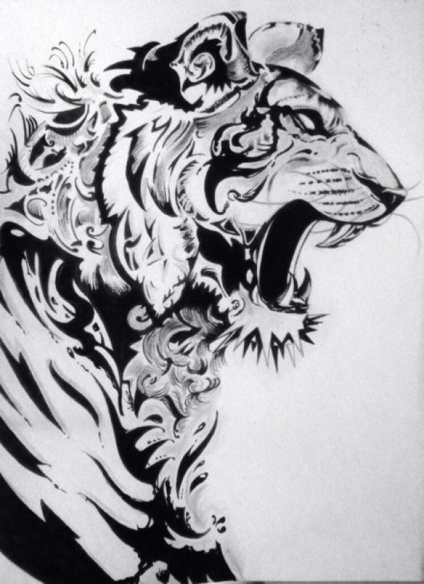 半甲唐狮手稿 传统的9款唐狮主题半甲纹身手稿图片