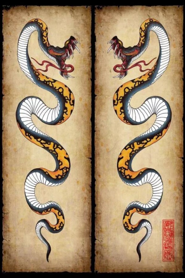一组满背大气九龙拉棺纹身图案作品和手稿