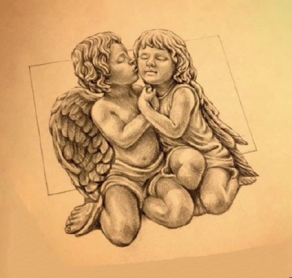 西方小天使爱神丘比特素描纹身手稿
