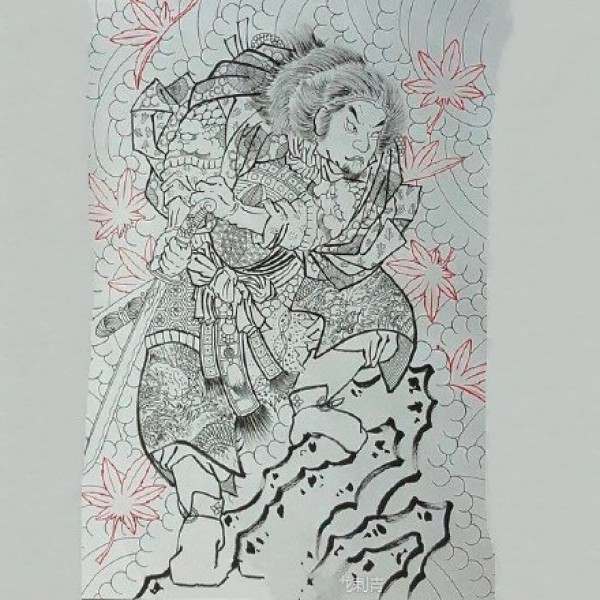 半甲唐狮手稿 传统的9款唐狮主题半甲纹身手稿图片