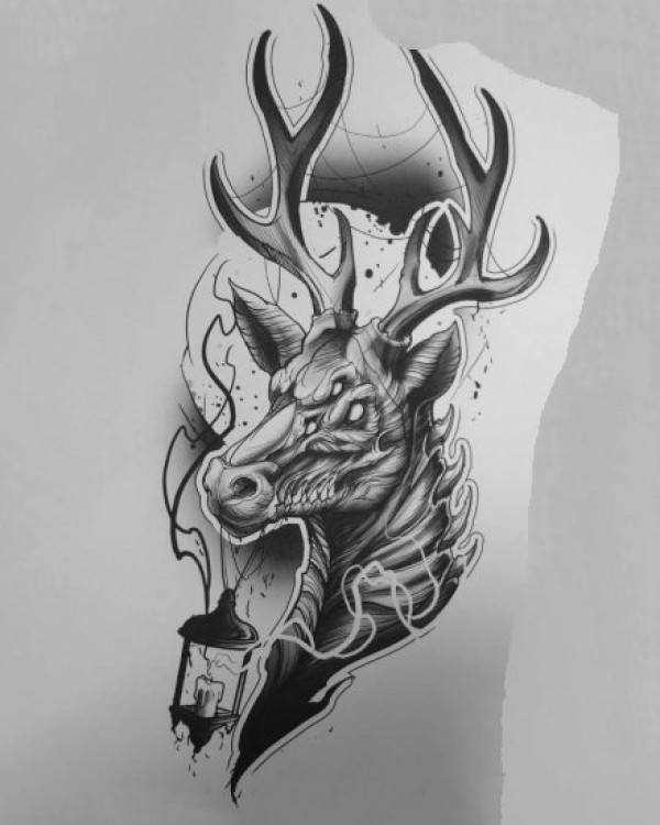 半甲唐狮手稿 传统的9款唐狮主题半甲纹身手稿图片
