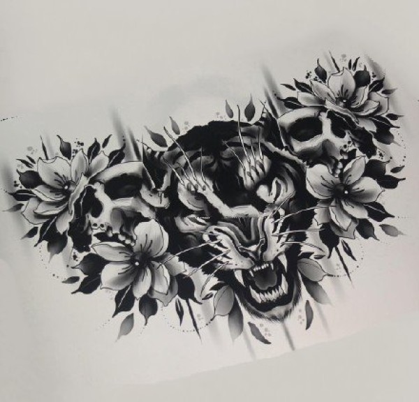 半甲唐狮手稿 传统的9款唐狮主题半甲纹身手稿图片