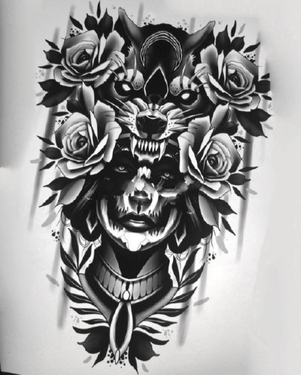 半甲唐狮手稿 传统的9款唐狮主题半甲纹身手稿图片