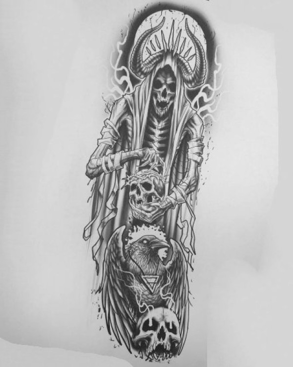 一组满背大气九龙拉棺纹身图案作品和手稿